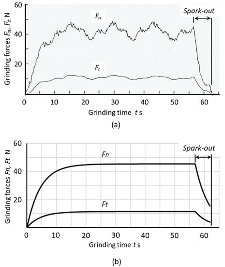 From this point of view, these models can be classified within the dynamic grinding model shown in Figure 2. However, they are not suitable for addressing the fundamental parameters of the grinding processes because the grinding forces are determined by the material removal rates, not only by the depth of cut. In addition, the dynamic model does not directly present practical setup conditions, such as workpiece sizes, grinding speed and infeed rates.