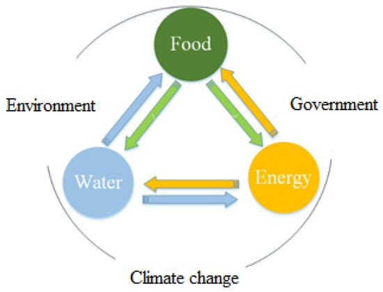 The food–energy–water (FEW) nexus is known as the significant interconnection between three essential resources for human societies. FEW is an extended concept that is introduced to overcome and manage resource scarceness challenges. The nexus target is to establish effective tradeoffs and synergies between energy, water and food, considering cross-sectoral policies, environmental and social impacts [1]. The FEW nexus implies that the availability of the others may limit constraints or changes of one edge, and implemented solutions in one sector can mainly affect other areas [2,3]. For example, food or energy production is limited by the availability of the water supply. Energy-saving can decrease water consumption, whereas water efficiency growth leads to a decrease in energy, which is used for transition and purification.