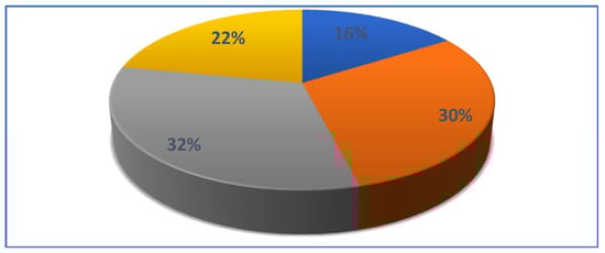 Since the Bonn conference (2011) with “The Water, Energy and Food Security Nexus—Solutions for the Green Economy” title was held, several numbers of FEW nexus have been published, whereas almost 300 organizations have formed across the world from 2011 to 2015 [17]. The related search keywords were: two-pronged nexus approach “energy–food” (EF), “energy–water” (FW), three-pronged nexus approach “energy–food–water” (EFW) or multipronged such as “energy–food–water–land” (EFWL). In ref. [17], by investigating 37 projects, it was described that 6, 11, 12, and 8 projects (16%, 30%, 32% and 22%) of them had a close linkage with FW, FEW, WE and FEWL nexus, respectively, which is demonstrated in Figure 3.