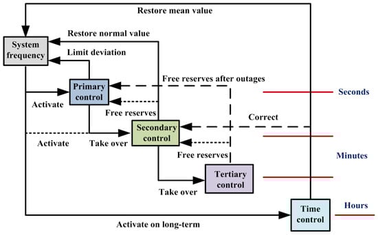 - Tertiary control partly completes the secondary control and then replaces it with rescheduling generation and is enforced by responsible parties/TSOs.