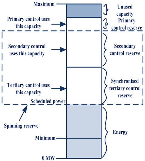 | Terminology | Primary control reserve Secondary control reserve Tertiary control reserve | Frequency responsive reserve Regulating reserve Spinning reserve Non-spinning reserve Non-spinning reserve Supplemental reserve |