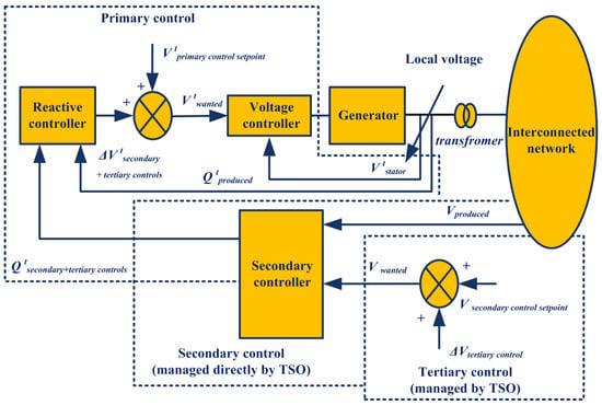 - Primary voltage control can be local automatic control, which saves the voltage at the generating bus at a set of points. The task is fulfilled by an automatic voltage regulator (AVR) [44].