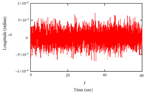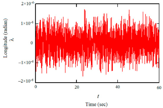 Graph of errors in estimating the longitude λ of the object obtained by implementing the adaptive filter.
