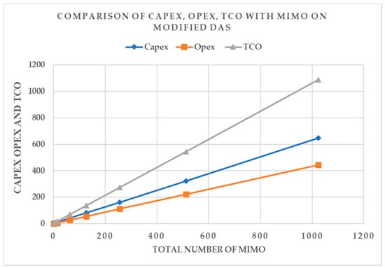 Reference [1] defined TCO for DAS as the sum of Capex and Opex and a sensitivity analysis was done on the bandwidth, running cost and interest rate. Reference [7] presented a techno-economic analysis for 5G architecture for DAS and MIMO. Reference [8] used an ordinary annuity model to predict the future annual repeating payment of the principal amount invested in Capex, Opex and TCO. Reference [9] stated that the principal cost for operations includes the running cost and backhaul cost, whereas the principal invested capital amount is made up of the eNodeB and the EPC, as well as the transmit and receive antenna.