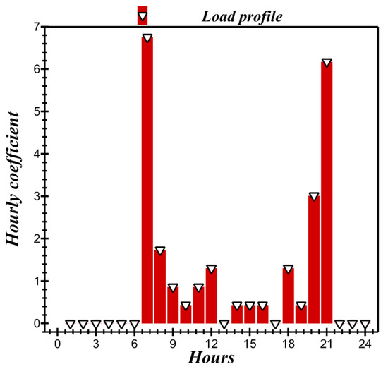 The distribution of the hourly hot water consumption is affected by different factors. It varies according to the seasons, days, or the habits of each considered Moroccan family. Various hot water load profile has been studied on the literature review such as the constant, the early morning, the late morning, rand, or the late afternoon profiles. For the present study, the consumption of 202 L per day is described according to the realistic load profile presented in the Figure 10.