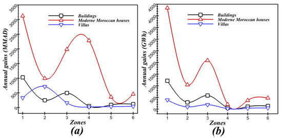 In the present work, the preliminary choice of the technology to be integrated into the Moroccan context was made based on the results of the different systems studied in the work exhibited in the literature review previously mentioned, the particularity of this study is to integrate the Moroccan climate context, economic and social in the choice and the technical elaboration of the adapted model in order to present a realistic study combining the technology and the current conjuncture of Morocco as part of an African area and fertile ground of the generalization project. For Morocco, solar energy is a crucial economic issue in coherence with the choice of sustainable development and the related energy policy, which aims promoting renewable energies to meet 20% of the country’s domestic energy needs, improving energy efficiency to achieve 12% reduction by 2020. Solar energy utilization is expected to play a pivotal role in environment protection and social development [34,35]. This orientation leaded many actions, laws and projects to integrate green solutions precisely the solar within different sectors [36], especially the building sector which presents 20.4% of the national total energy consumption [37], this sector is characterized, firstly by a quick development because of fast population growth and an increasing urbanization rate [38,39].