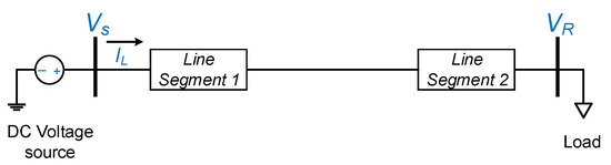 A typical dc line under normal operating conditions is shown in Figure 1. The line has a resistance of and is fed by a constant dc voltage source. The voltages at the source and load ends are and respectively. The current flowing through the line is .