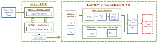 The objective of this section is to demonstrate the concept of the proposed voltage differential protection method presented in Section 2 to detect a series arc fault. For this purpose, an embedded controller and series arc fault experimental data were used to perform a hardware-in-the-loop (HIL) test.