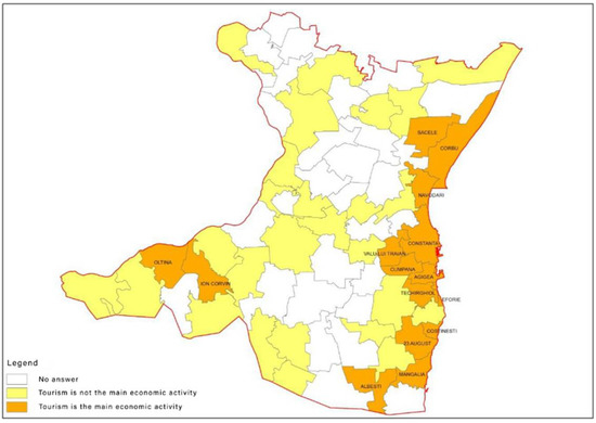 Localities in Constanta County where tourism is considered a main economic activity. Source: http://www.cjc.ro/dyn_doc/turism/Strategia_jud.Constanta_Faza2.pdf, accesed on 20 April 2021.