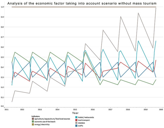 Analysis of economic factor indicators for the without mass tourism scenario.