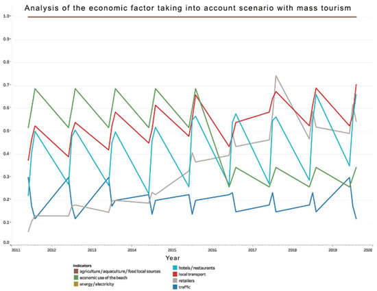 Analysis of economic factor indicators for the mass tourism scenario.