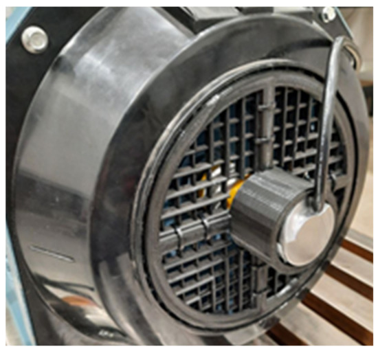 To mount the encoder on the motor, a 3D printed coupling was designed in the SOLIDWORKS “2020, Wyman Street, Waltham, MA, USA” platform and a frame was used to hold the encoder on the motor. The coupling and the holder were printed in the lab. Then, the encoder was coupled to the motor by the coupling and held by the holder, as shown in Figure 4.