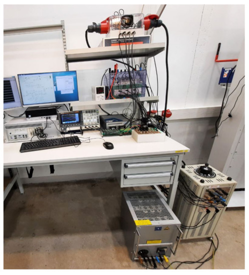 The RT box 1 provided the opportunity for rapid control prototyping where the control algorithm was designed in the real-time simulation Plecs platform, and the device was employed as a controller. Furthermore, the high sampling rate and high-fidelity PWM signals, along with the FPGA embedded CPU of RT box 1 offered a versatile processing unit that facilitated the research into control systems for any type of algorithm implementation. Furthermore, thanks to the Xilinx Zynq system-on-chip that benefits from FPGA and CPU cores, the RT box 1 provided a low data transmission latency. In this way, one of the cores was used for communication with the user, and the other core was employed for real-time simulation.