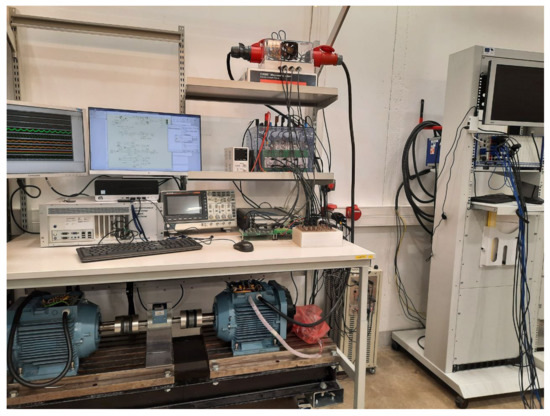 The proper integration of the devices is a substantial subject that requires a comprehensive understanding of the devices. The connection of the devices, starting from the appropriate connectors to the type of data that each device can send/receive, are critical considerations to take into account. For instance, the secure connectors and wires to connect the inverter to the motor were employed to handle 30 A of a nominal current. For low-voltage analog signals, BNC connectors were utilized. Figure 12 shows the block diagram of the scheme of the setup. The figure illustrates the connection of the power and the signal parts of the system and the integration of all the devices.