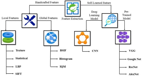 The Deep Learning-based approach is alike the ML-based approach. The only variance lies in the “Detection algorithms and the used Models. Deep learning comprises the different models such as convolutional neural networks (CNNs)”, VGG-16, ResNet, Google Net, and Alex Net, etc. The DL-based approach employs two types of models: regular models, which are models that are trained from the ground up using training data, and pre-trained models, which are models that are trained on data or features extracted from the same domain. Studies that used handcrafted feature extraction using machine learning approaches are explained in detail in Section 4.1.1. and deep learning approaches are explained in Section 4.1.2.
