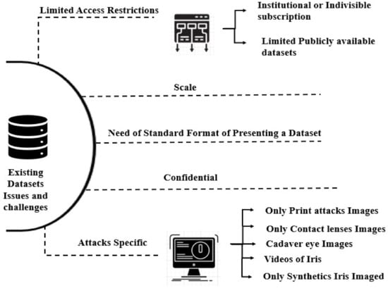 Nguyen et al. [] conducted a widespread study of long-range Iris Recognition. The study converses the prevailing systems and their restrictions and three easily accessible general population datasets, “UBIRIS V2.0, CASIA-Iris-Distance”, and MBGC. The authors also converse the limits of the recognition methods. Dronky et al. [] claim that the maximum of the ILD was planned to identified certain sorts of “fake iris patterns or used private datasets. This is not appropriate in real-world situations”, where the system should detect diverse varieties of spoofing attacks. Thus, the author claims a scope for up-gradation in ILD techniques to guard the iris recognition systems contrary to spoofing attacks.