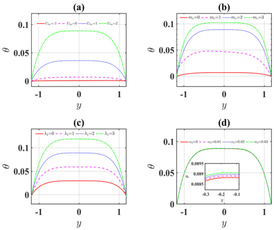- The influence of enhances the velocity and temperature profiles for Newtonian fluids, and it decreases for .