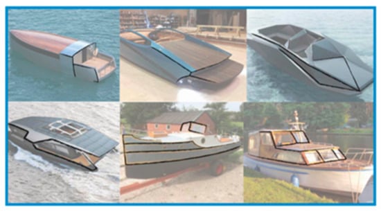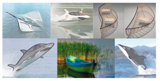 - Natural style. It is characterized by smooth and, above all, zoomorphic lines. The prototype seems to want to integrate into the marine world by assuming its shapes and appearance (Figure 12 and Figure 13).