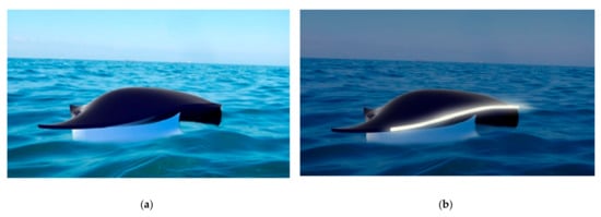 Aesthetic prototype of the marine drone: (a) during the day, (b) during the night.