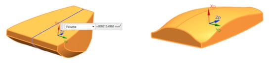 Moreover, a technical element validation process was performed as well, in order to quantify the actual maximum capacity for plastic recovery of the unit. To do so, a parametric CAD model of the element was done (Figure 18) by considering the measures of the functional elements included in the device. Available volume validation accounted for 0.8 m3 of space, in which, translated in waste quantity, values of a maximum number of plastic bottles (0.5 L) was obtained as shown in Table 6 with compacted waste data gathered from the study of Poroschianu et al. [] and Islam []. Designed object volume area was calculated via CAD analysis, as shown in Figure 19.
