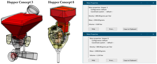 Since, in accordance with the technological requirements, two similar sowing devices concept 7 and concept 8 were selected, we will compare them for the final selection of a sample for production according to the following criteria: