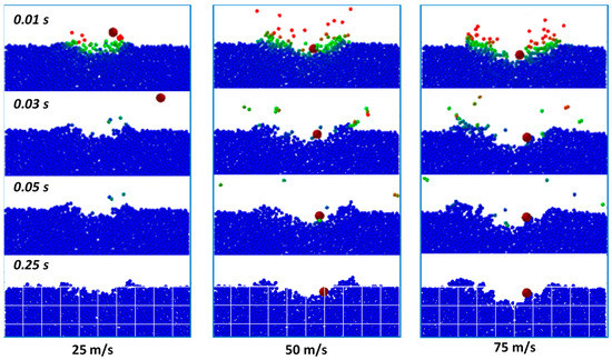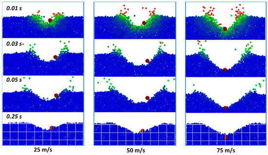 Analysis of the data shows that at speeds of 25 m/s, the seed is ejected from the crater outside the modeling zone in all experiments. At a speed of 50 m/s, the probability of seed ejection is reduced to 30% and at 75 m/s to 10%. The depth of the crater at speeds of 50 and 75 m/s is also slightly greater than the penetration depth of the seed.