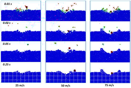 Studies of the processes of impact interaction of seeds with soil media are practically absent due to the relative novelty of this direction. In other industries there are similar studies of the impact interactions of objects with granular media, for example, the processes of formation of craters on the surface of planets, the movement of projectiles in granular media, etc. This is a series of experimental studies [43,44,45,46] and numerical studies using DEM modeling [47,48,49]. Comparison of the parameters obtained as a result of DEM modeling with experimental data has proven that they are in fairly good agreement with each other. However, the results of these studies cannot be used to describe the processes of impact interaction of seeds with the soil environment due to significant differences in the properties of the environments and modes of interaction.