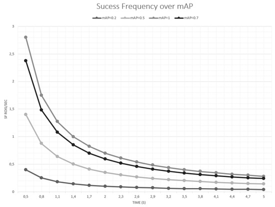 where T is the mean frame load time (s) and T is the mean CNN frame detection time (s). The S.F. metric expresses the number of ROIs (contours) per second successfully detected over time. The S.F. values over the mAP and image detection times are depicted in Figure 4. The S.F. metric is critical for embedded and low-power devices with limited processing capabilities (studied in Scenario II). Therefore, it is more suitable for the CNN algorithm to be selected based on the highest S.F. value instead of the CNN mAP or total loss for such devices.
