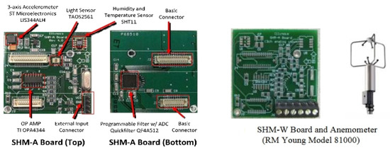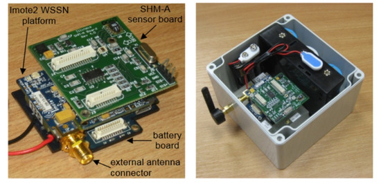 - de Battista, N.; Brownjohn, J.M.W. Use of Imote2 with SHM-A wireless smart sensor nodes. In Proceedings of the 5th World Conference on Structural Control and Monitoring (5WCSCM), Japan, Tokyo, 12–14 July 2010. [Google Scholar]