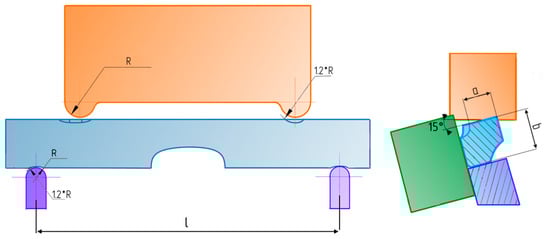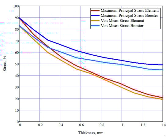 In this case, the difference between the change in stresses along the thickness in the tested specimen and the stresses in the rotating drum with blades is checked [] (Figure 10).