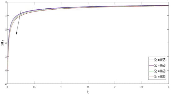 - Sherwood’s Nusselt number rises as values broaden. With the expanding values of Sc, the number grows.