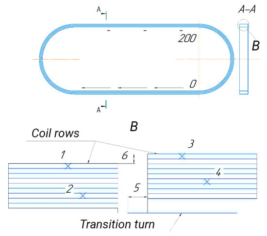 | Places for measuring the distance between adjacent turns in different parts of the coil | 1, 2, 3, 4 | «Distance 1», «Distance 2», «Distance 3», «Distance 4» |