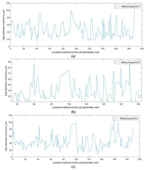 - In general, the graphs of the distance between the turns should be close to a straight line. At the same time, in the process of developing the technology, the permissible values of the gaps, as well as their standard deviations, should be formulated. The values will be controlled during the CT examination of the manufactured samples;