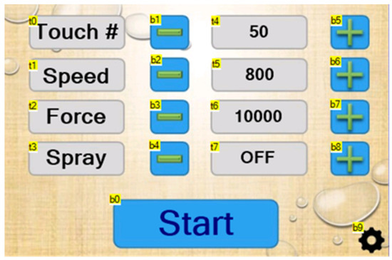 Touchscreen settings input for data collection. Note that these are the default settings.