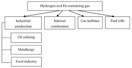 Hydrogen can be well used as a fuel in engines, autonomous power, and heat generators; it is convenient to use it for heat supply to distributed consumers, for energy transportation, and storage. It is also required in large amounts for oil refining in the chemical, metallurgical, construction, fuel, and food industries.