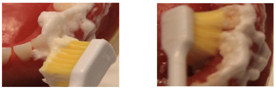 To each patient, after the diagnosis of periodontal disease, before and after treatment, and during all periodontal maintenance therapy, the authors suggested the following maintenance home hygiene protocol: Sonic brush with vertical movement (Broxo OraBrush, Santé Parodonte, Geneva, Switzeland), interdental brushes, and oral irrigators (Broxo OraJets, Santé Parodonte, Geneva, Switzeland) at least two times every day (Figure 5, Figure 6 and Figure 7).