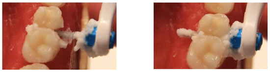 Interdental brush in action.