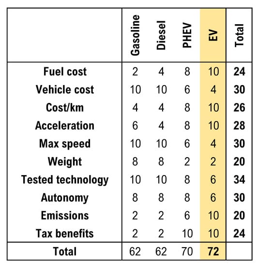As shown in Figure 5, the most suitable powertrain was the electric one.