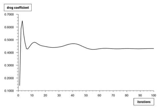 Chart on the convergence to the exact value of Cd obtained with Ansys Fluent with increasing number of iterations.