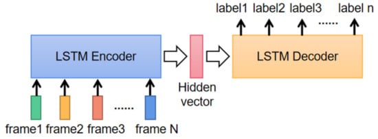 The lengths of input N and output n are different, so it is also critical to use an encoder-decoder structured model, as shown in Figure 8. When using the LSTM as an encoder, it transforms the input sequence into a hidden vector and passes it to the decoder. The LSTM decoder gives the output letters step by step according to the information from the hidden vector.