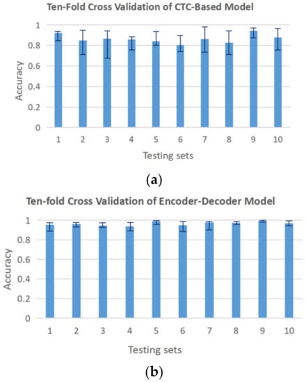 Ten-fold cross-validation of sequence recognition models: (a) CTC-based model; (b) encoder-decoder model.