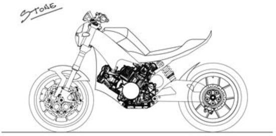 Afterwards, it was decided to proceed with a front-frame type for the frame design. The front frame itself allows reduced weight and dimensions compared to more conventional types of frames as it uses the engine as a stressed member, giving the overall bike increased rigidity and dynamic advantages. It has been widely used, for instance, in latest Ducati models, especially on trellis frame type. It is also found applied in motor racing competitions thanks to its dynamic advantages.