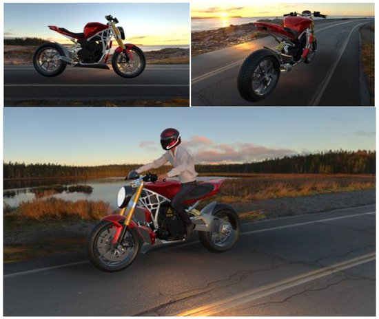 The project succeeded in achieving its objectives. In particular, through the methods of Stylistic Design Engineering (SDE) and Quality Function Deployment (QFD) it was possible to conduct the stylistic development of a futuristic naked motorbike. It managed to improve the design phase thanks to the prototyping solutions adopted, as these permitted us to potentially avoid the induction of a subsequent redesign phase that would generate higher costs for the total management of the project. Afterwards, different real-world scenario analyses were developed thanks to augmented reality and additive manufacturing. These gave us the opportunity to help develop both the styling and the technical side of the product. To further develop the project, in order to make it closer and closer to production, more aspects need to be investigated, such as some of the main innovations of the bike that need standalone projects. Starting with the powertrain, a hybrid proposal was developed with the idea of downsizing the engine to 700cc (compared to the benchmarking competitors) and recovering the loss of power of the small displacement with an electric engine, providing torque to increase riding pleasure, which would receive energy in deceleration phases. Although the idea was taken from an already existing project and the electric motor respected the dimensions of a 7–10 kW unit, further dimensioning of the supercap capacity and positioning to give the maximum efficiency need to be performed.