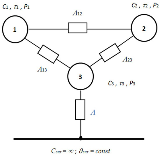 The system of heat balance equations for the circuit shown in Figure 2 is as follows: