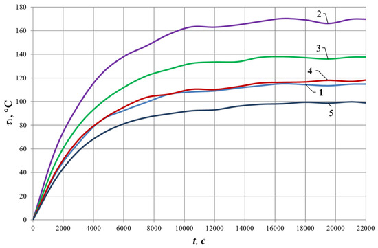 Thus, the steady-state temperature excess depends on the coefficients of the impact of active power losses in the motor units on the heating of the stator insulation and is a function of these losses (P1, P2, P3).