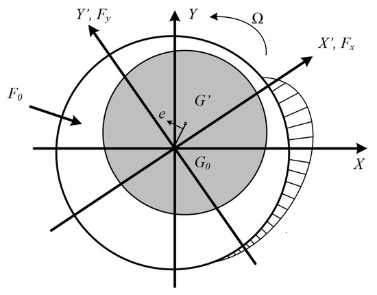 where denotes the nominal space between the cans of the rotor and the stator; / is referred to as the bearing Summerfield number; is the static force; and is the eccentricity ratio referred to Figure 3; is the absolute viscosity; L, , and are the length of the rotor, the radius of the rotor, and the angular velocity, respectively.