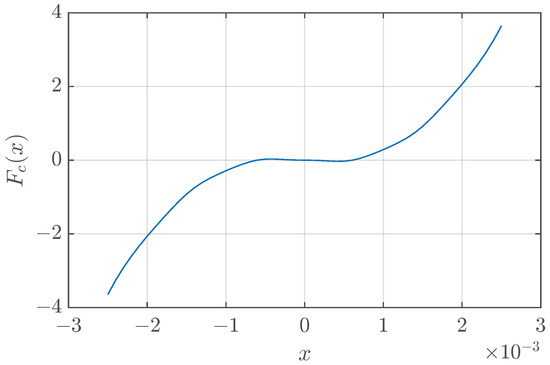 Cubic or nearly cubic nonlinearity can be achieved in many ways. Some special approaches to designing elastic elements with such a nonlinearity can be found in the literature, including conic springs [30] and cam-guided or cam-wrapped springs [31]. However, the truly cubic behavior of is unnecessary. The only requirement is that the elastic force is nonlinear and drives the system into the interval . An example of a system with backlash from [3] shows that even the use of a piecewise-linear function
