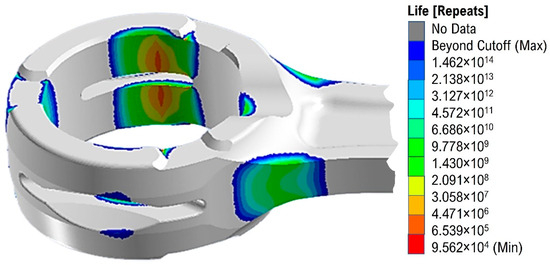 Results of fatigue analysis performed on the modified version of the connecting rod head.