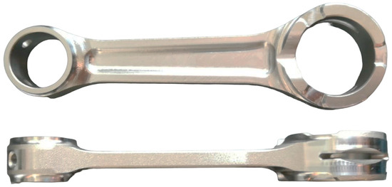 The new connecting rod was manufactured and compared with the original one. Weight represents the variable of greatest interest. The reverse engineering process combined with finite element calculation allowed it to go from 110 g to 97.6 g, a reduction of 11.2%, as shown in Figure 13.