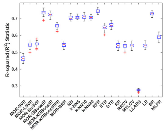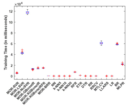 The regression learning methods or regression techniques investigated in this work are listed in Table 3 and references are also provided for their full descriptions. These methods include variants of multi-output regression (MOR) in which different regression algorithms have been used as estimators and k-nearest neighbors (k-NN) where the implementation is carried out using four different values of k, 1, 5, 10, and 20 to have , k-NN5, k-NN10 and k-NN20, respectively.